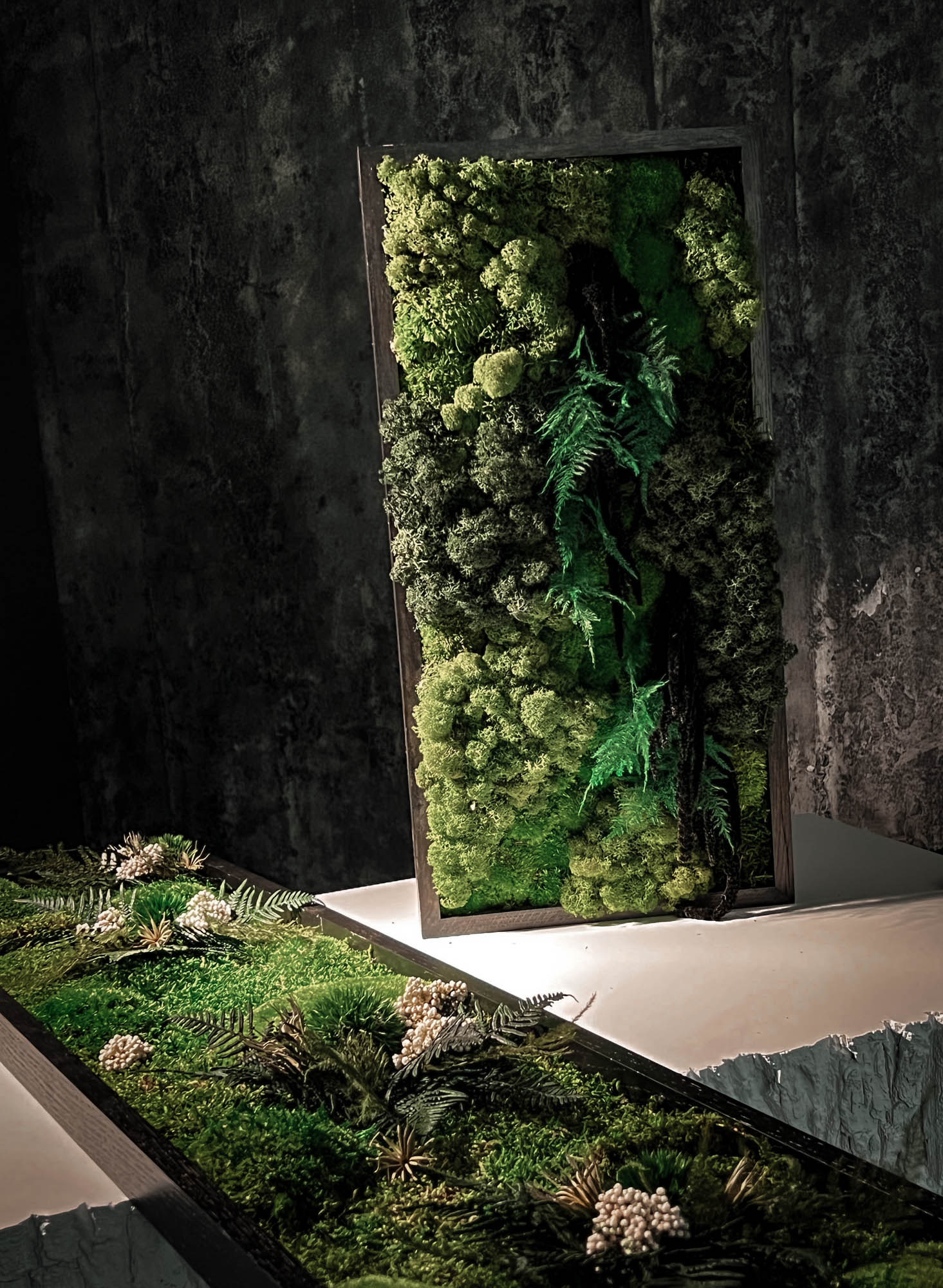 Verleihen Sie Ihren Wänden neues Leben mit unseren handgefertigten Wandbildern aus konserviertem Moos. Diese nachhaltigen und umweltfreundlichen Designs bringen frischen Wind in jeden Raum und verleihen ihm sofort eine natürliche Note, die Sie nirgendwo sonst finden!