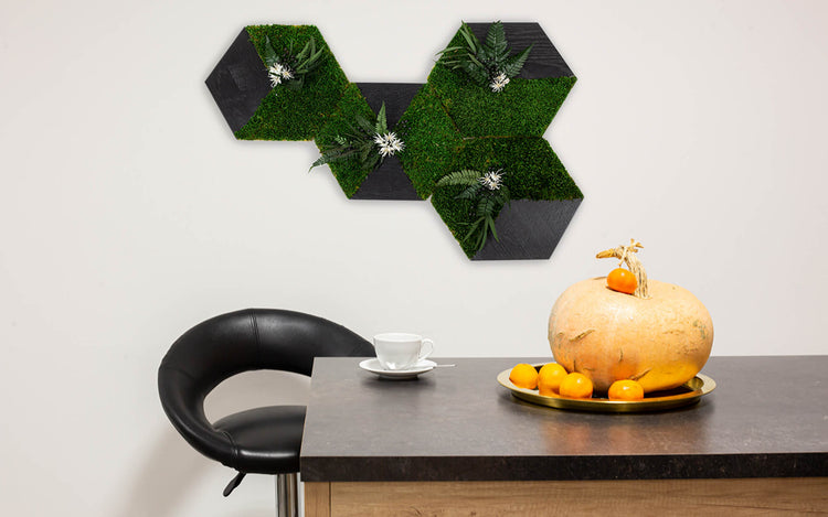 Wandbild aus wabenförmigem Moos, sechseckige Formen aus konserviertem Moos, Einzugsgeschenk