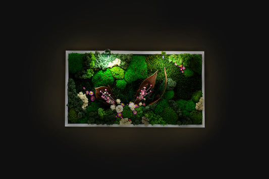 Atemberaubende Mooskunst mit LED-Beleuchtung – Lebendes Moos-LED-Kunstwerk, beleuchtet und gerahmt