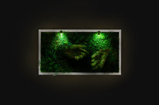 Wunderschönes Kunstwerk aus konserviertem Moos mit LED-Beleuchtung Lebendes Moos LED-Wandbild Konserviertes Moos