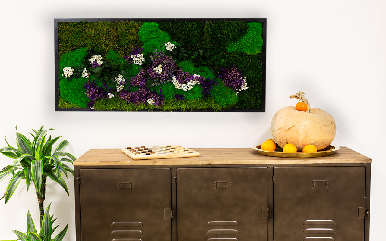 • Materialien: Eiche, lebendes Moos, konserviertes Moos, Pflanzenwandkunst, lebende Pflanzen, Naturpflanzen, Naturholz, Rentierflechte, Holz
