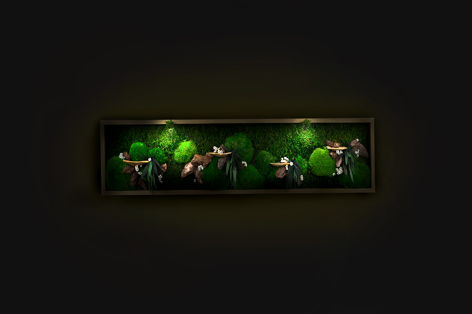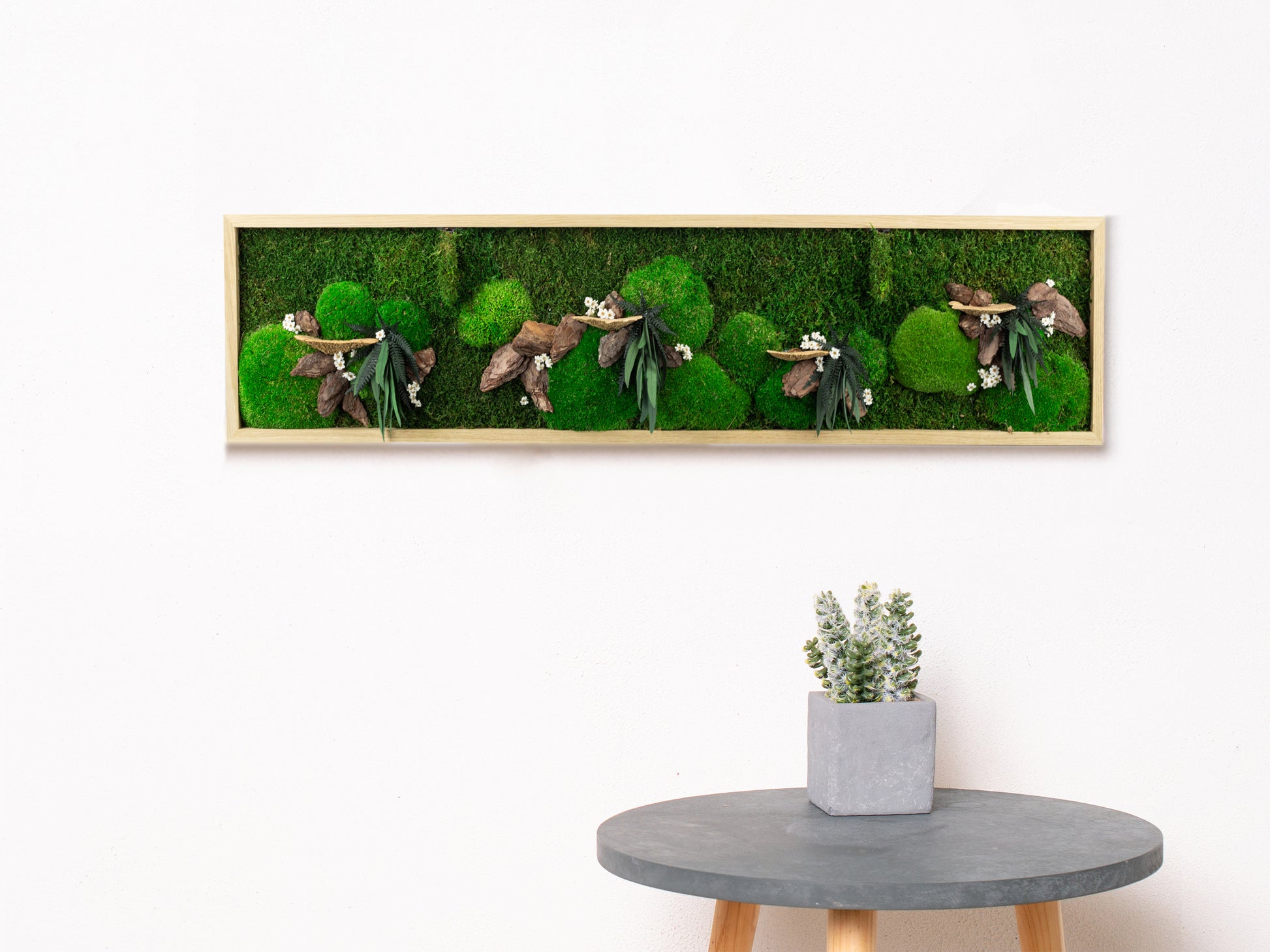 • Materialien: Eiche, lebendes Moos, konserviertes Moos, Pflanzenwandkunst, lebende Pflanzen, Naturpflanzen, Naturholz, Rentierflechte, Holz