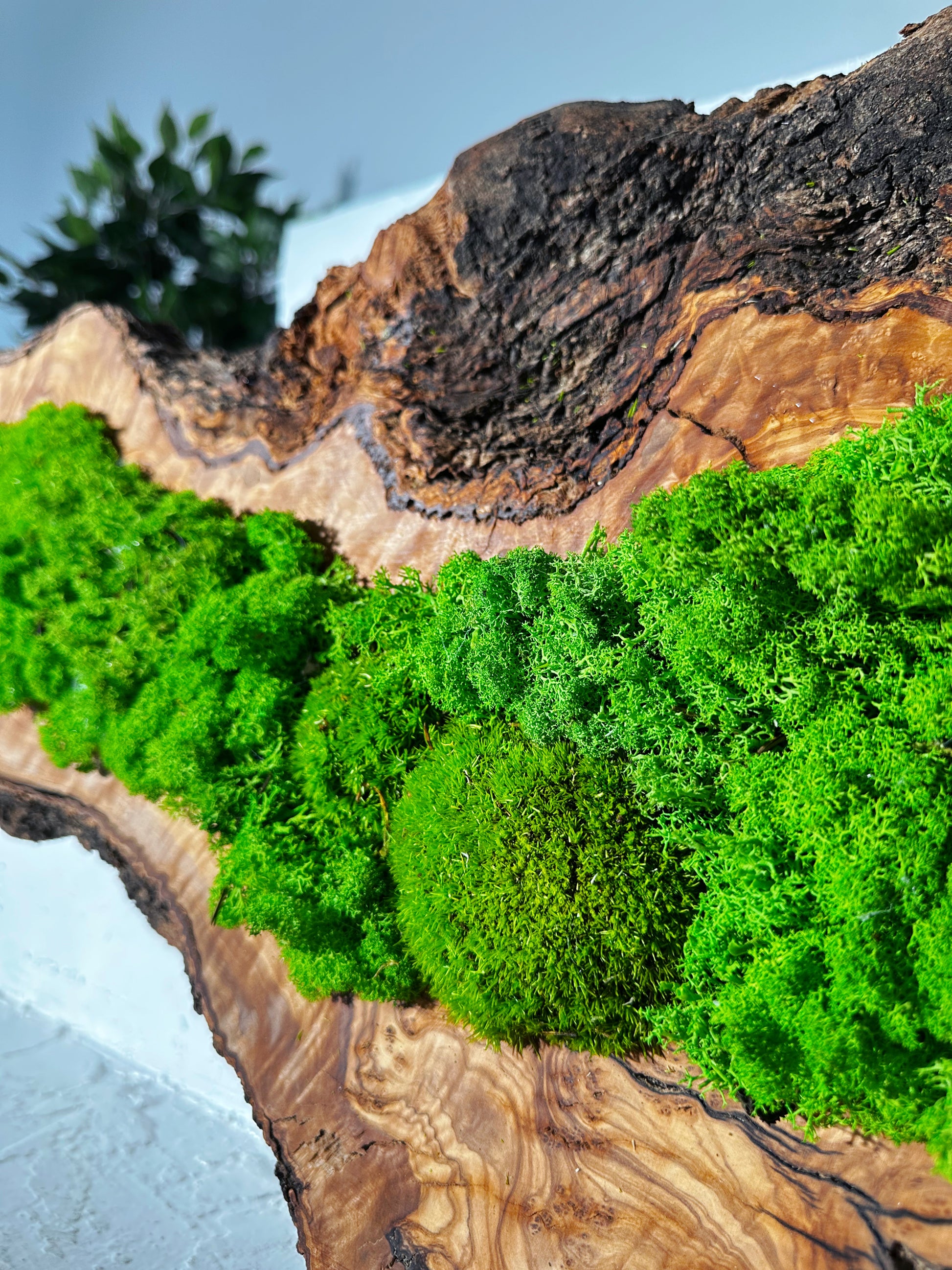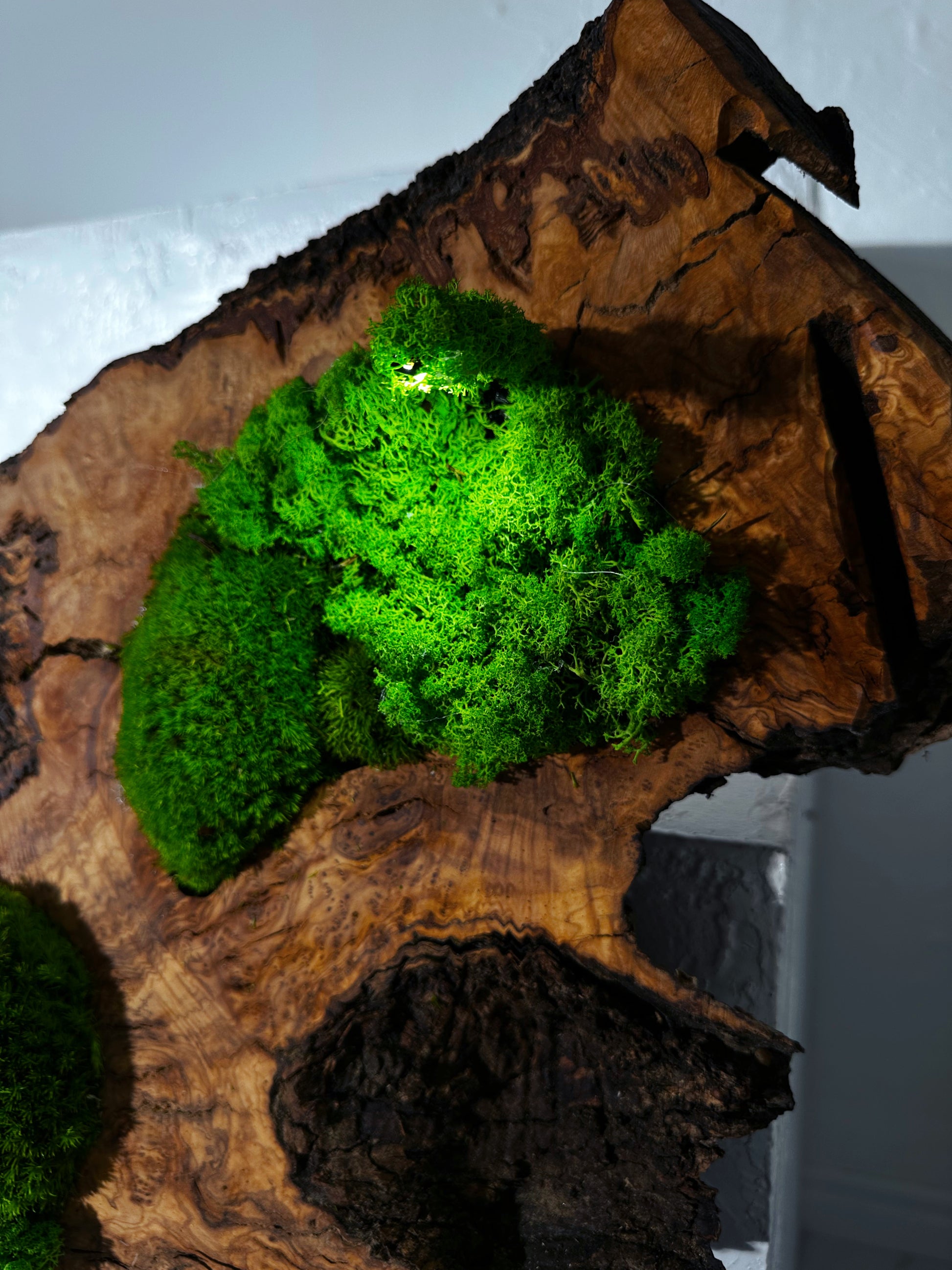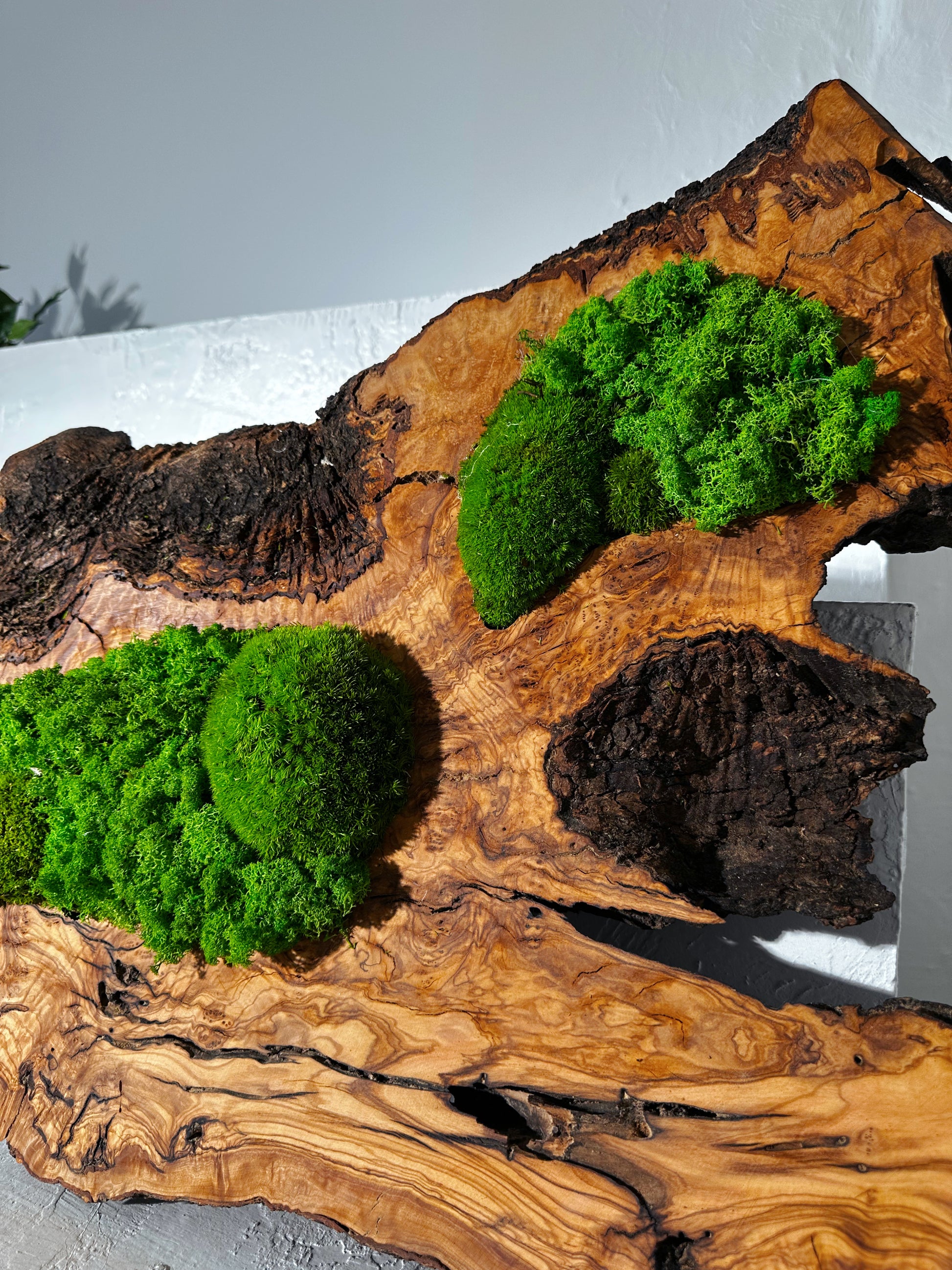 • Materialien: Eiche, lebendes Moos, konserviertes Moos, Pflanzenwandkunst, lebende Pflanzen, Naturpflanzen, Naturholz, Rentierflechte, Olive Holz