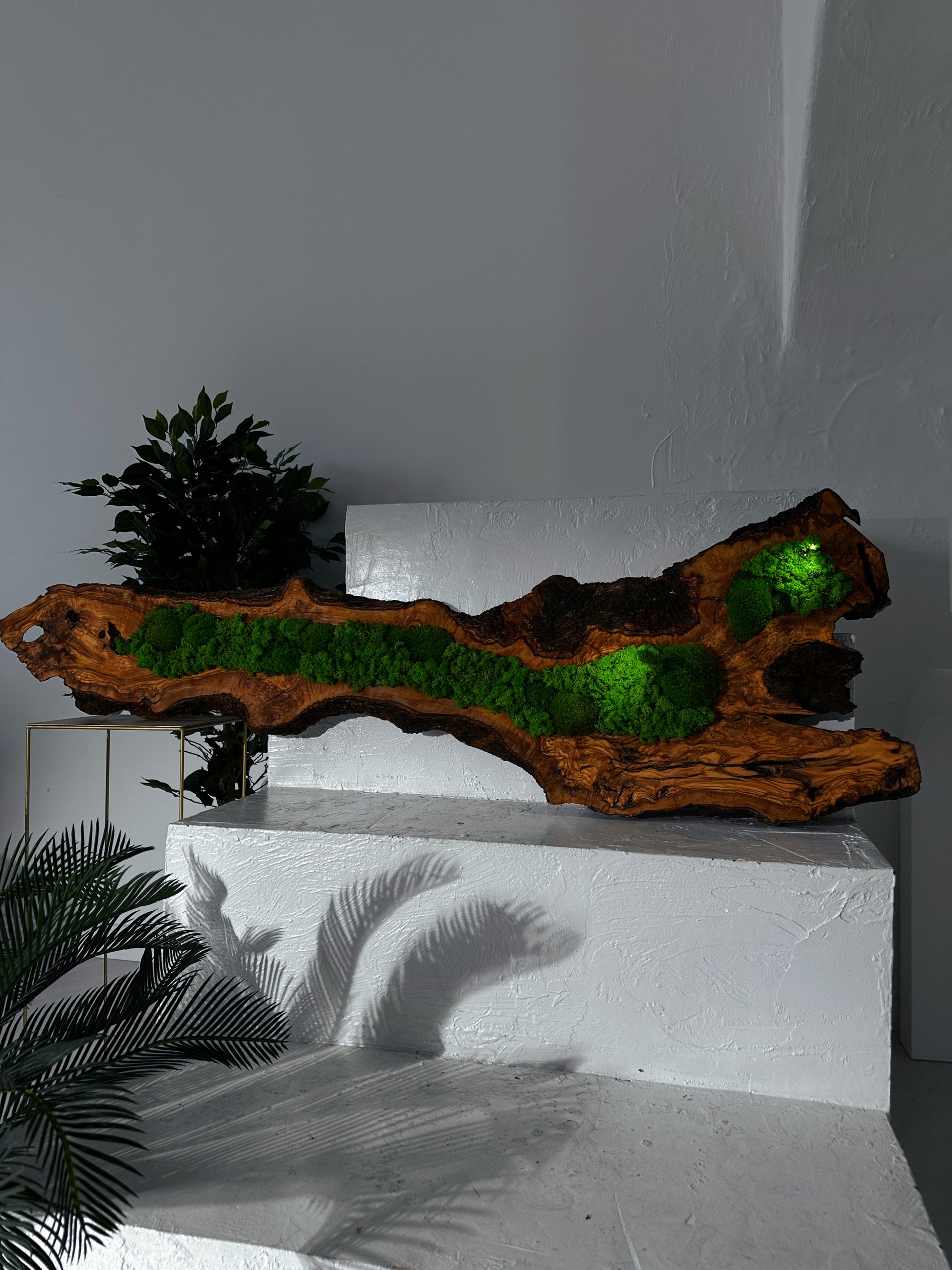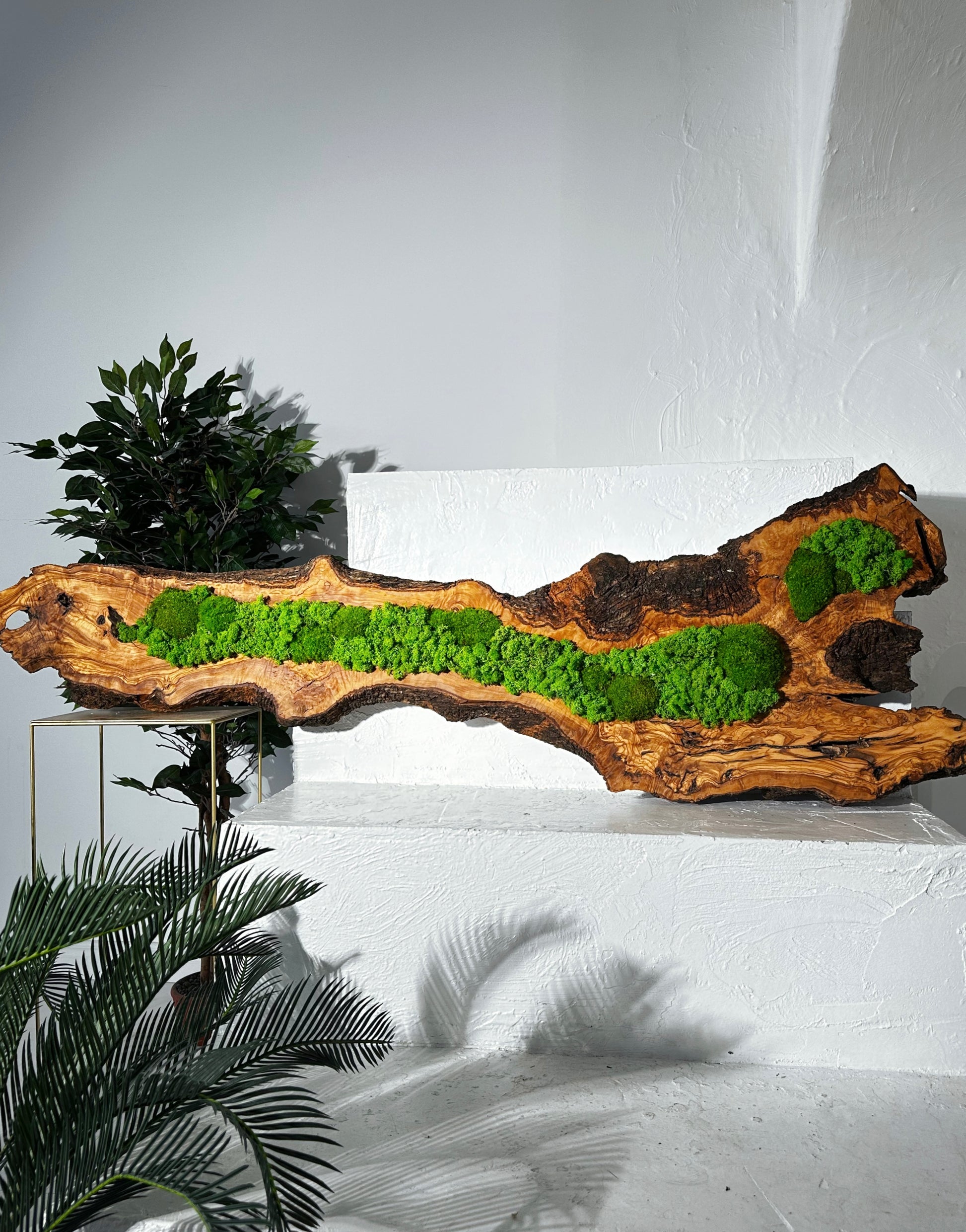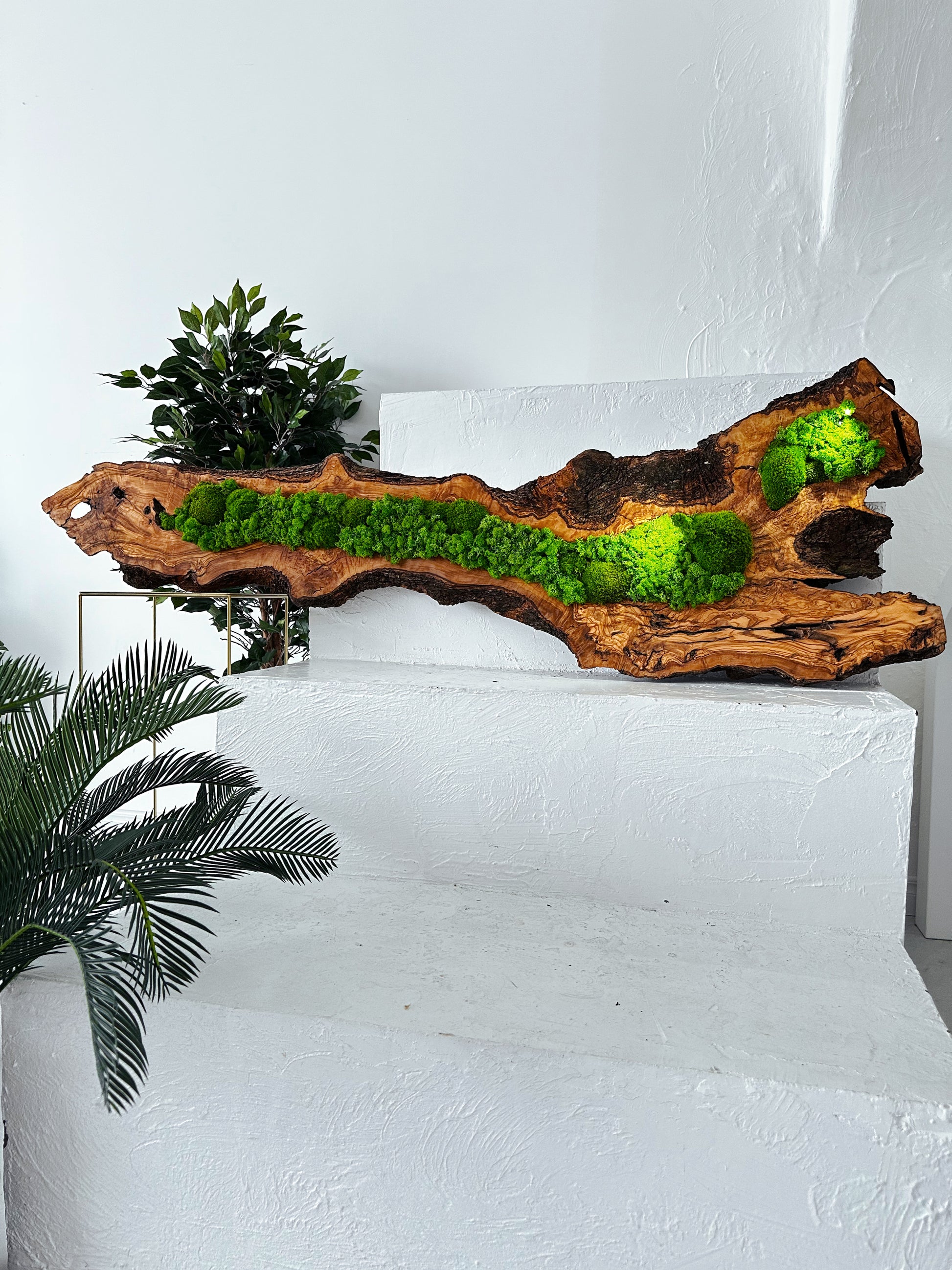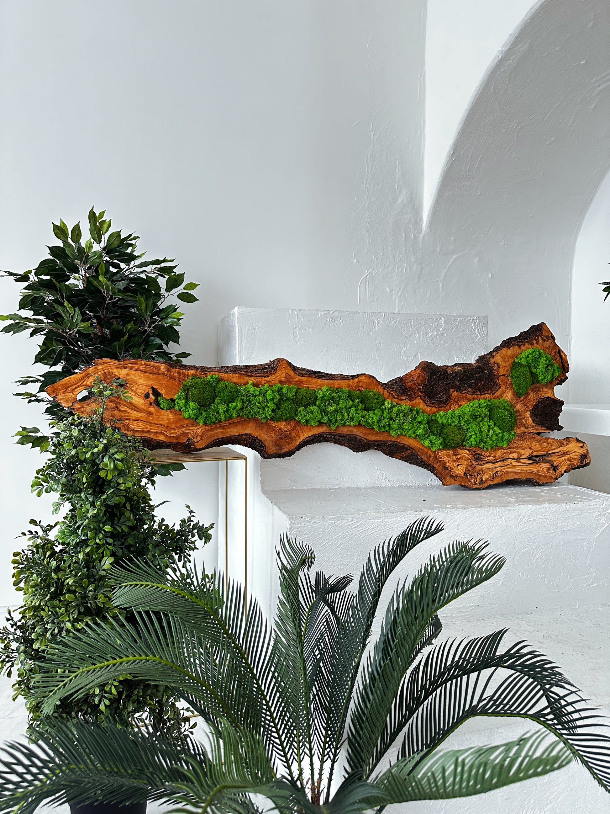 • Materialien: Eiche, lebendes Moos, konserviertes Moos, Pflanzenwandkunst, lebende Pflanzen, Naturpflanzen, Naturholz, Rentierflechte, Olive Holz