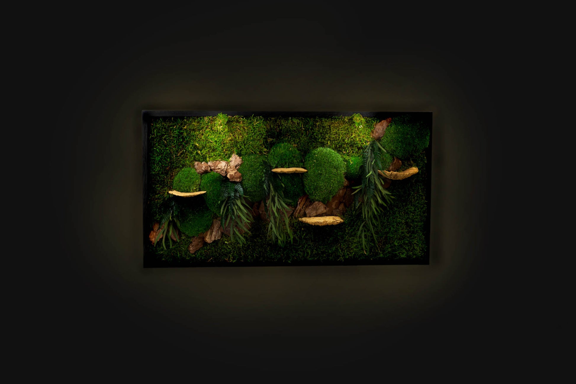 Wunderschöne grüne Wanddekoration aus konserviertem Moos mit LED-Beleuchtung, gerahmte Pflanzen-Wanddekoration