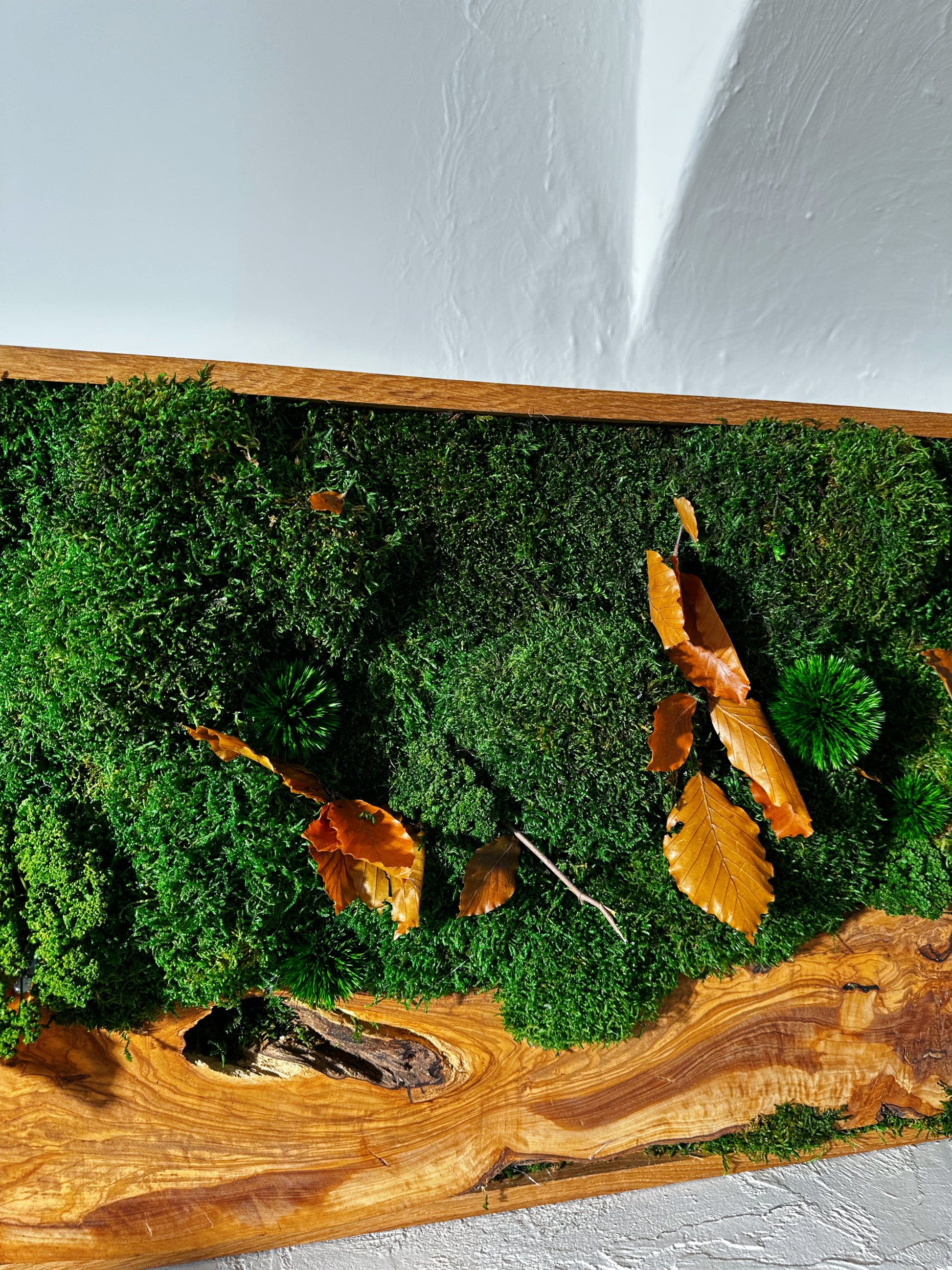 - Materialien: Eiche, lebendes Moos, konserviertes Moos, Pflanzenwandkunst, lebende Pflanzen, Naturpflanzen, Naturholz, Rentierflechte, Holz