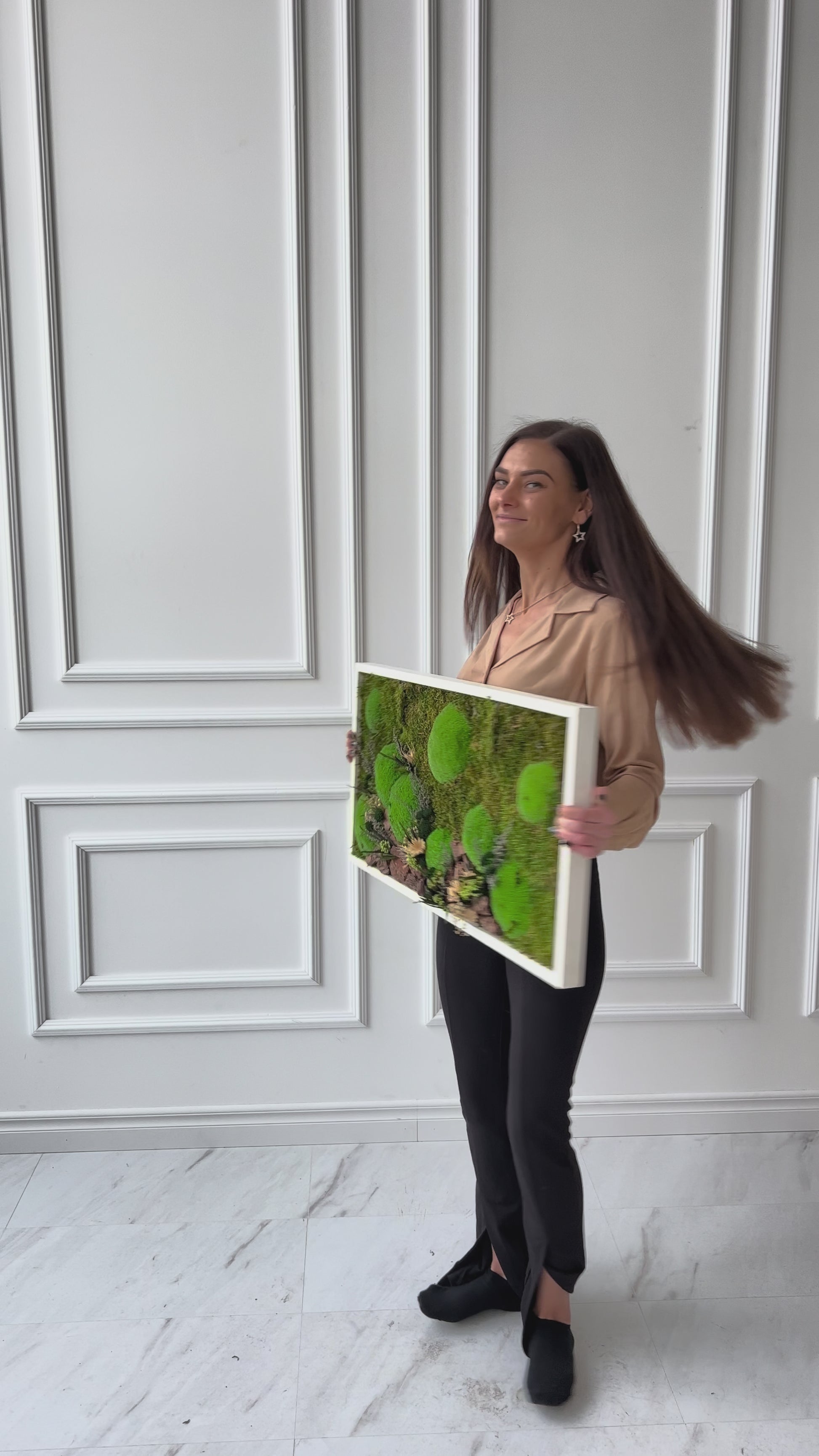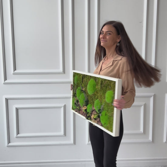 - Materialien: Eiche, lebendes Moos, konserviertes Moos, Pflanzenwandkunst, lebende Pflanzen, Naturpflanzen, Naturholz, Rentierflechte, Holz